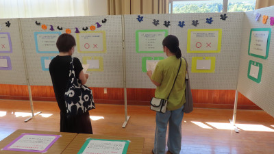 文化祭での展示(美術部、家庭クラブ、保健委員会、VYS、大洲農業)の様子です。保護者の方々も展示内容に興味深々の様子でした。